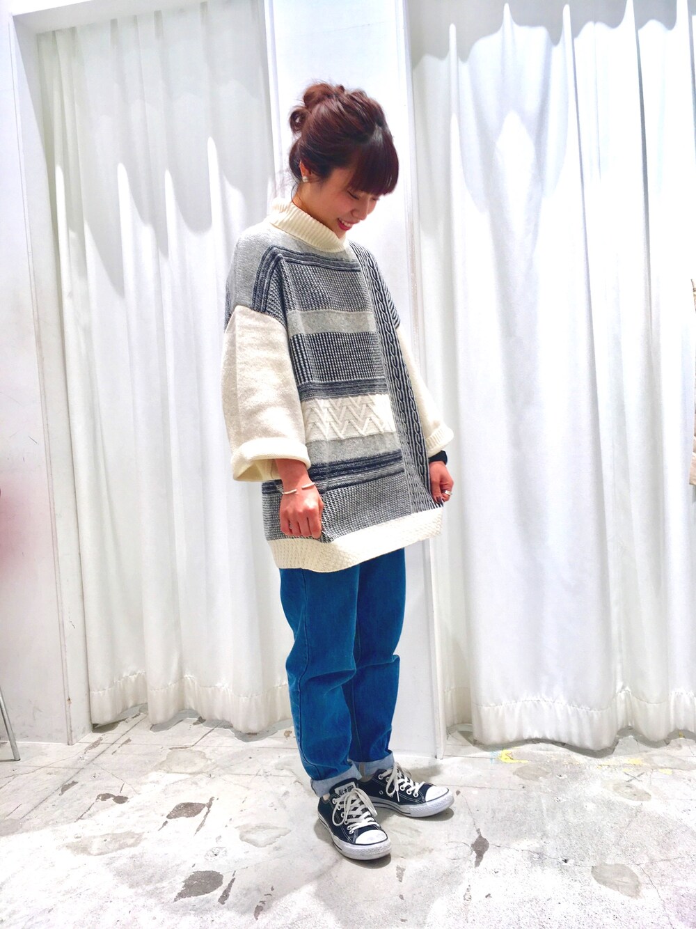 ゆるいニットがかわいい 袖はたっぷりが今年っぽい