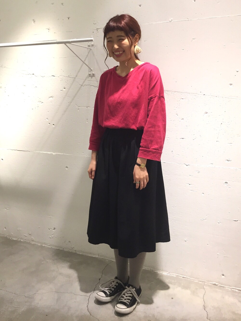 鮮やかなピンク 黒と合わせて大人に