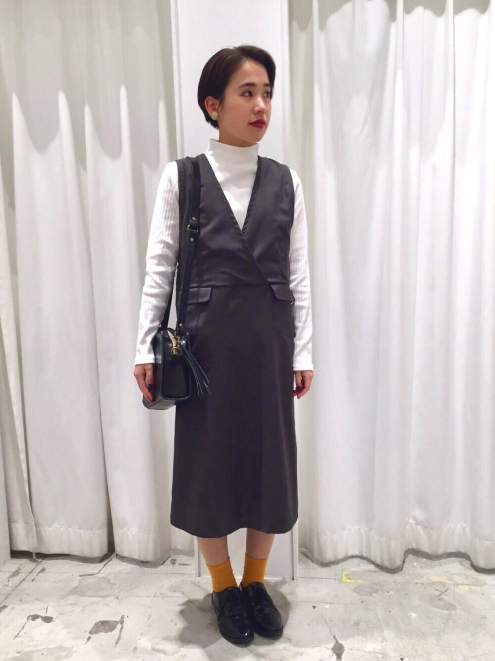 シンプルに品良く 差し色の靴下が◎ TIDWAYの人気のバッグは店頭で!!