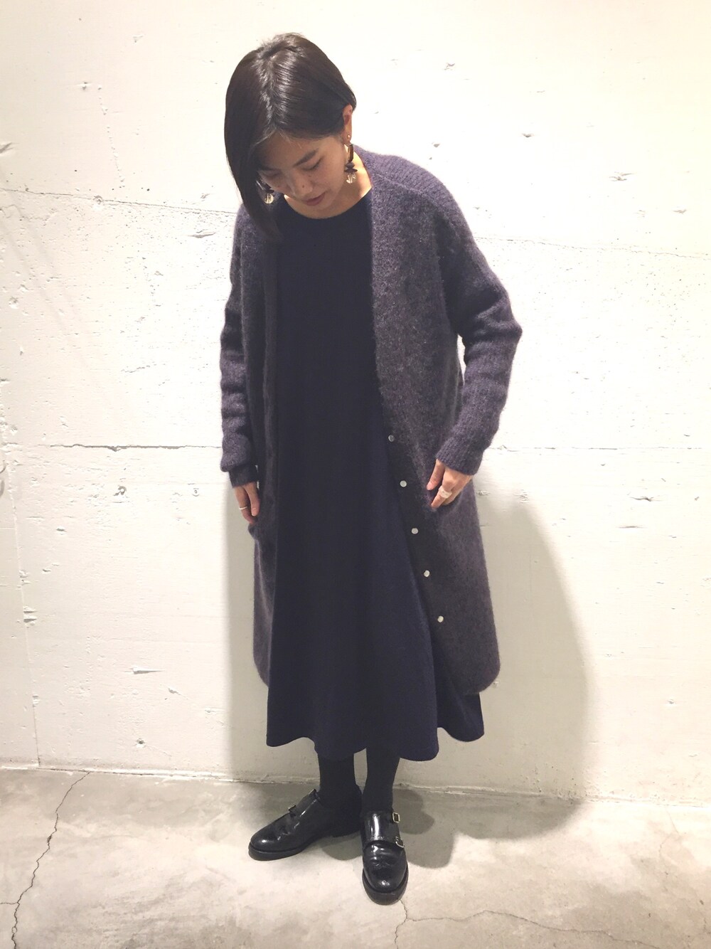 PAR ICI(PAR ICIアトリエ)のワンピース「【UNIVERSAL TISSU/ユニバーサルティシュ】 ボイルドウールオーバーニットOP」を使ったコーディネート