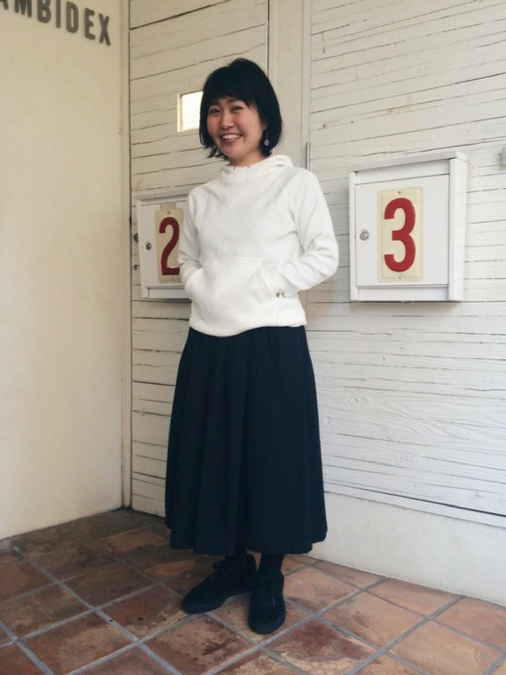 パーカーをシンプルに コンパクトなパーカーは、 フレアスカートとあわせるのが1番かわいいと 改めて感じるコーデです。 カジュアルなアイテムもモノトーンなら大人っぽい。