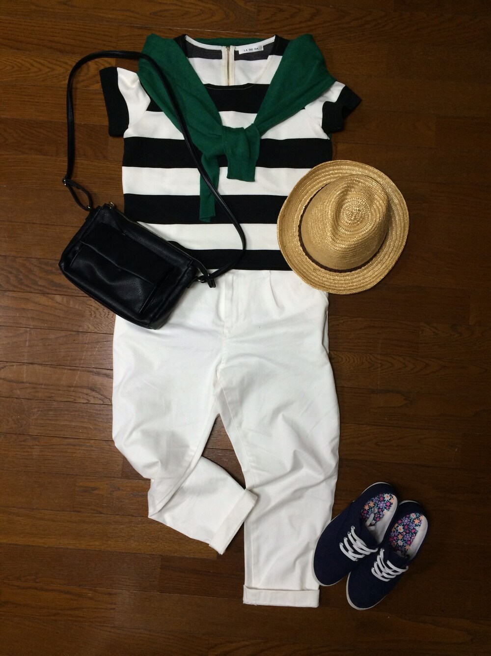 トップス:ブランド不明 帽子:ブランド不明 靴:GU ⋆◡̈⃝⋆