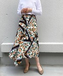 大人の遊び心のあるスタイルにピッタリな フラワースカートコーデ♪ フラワーや幾何学のような色んな柄が入ったスカートは、 一枚取り入れるだけでコーデを華やかにしてくれます♪ プラス、アシンメトリーな着丈と片方のプリーツデザインで 動きのあるシルエットが楽しめるのもポイント!! ブラックのシンプルなカットソーと小物合わせで ほんのりシックな感じに(^^)♡ 他にもトレンドアイテムやこれから使えるアイテム等幅広いテイストをご用意しておりますので、是非覗いてみてくださいね(*^^*)