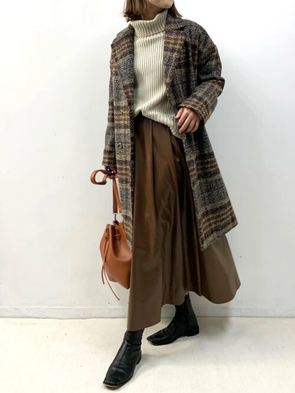 暖かみのある秋冬コーデ♫ 今年トレンドのレザースカートは、 コーデにアクセントとオシャレ感をグンとアップしてくれるマストアイテム♡ ゆったり感のあるニットやチェックコートと合わせてクラシカルな 暖かみのある大人のカジュアルコーデに♫ 他にも新作商品続々と販売しておりますので、 この機会に是非、覗いて見てくださいね(*^^*)