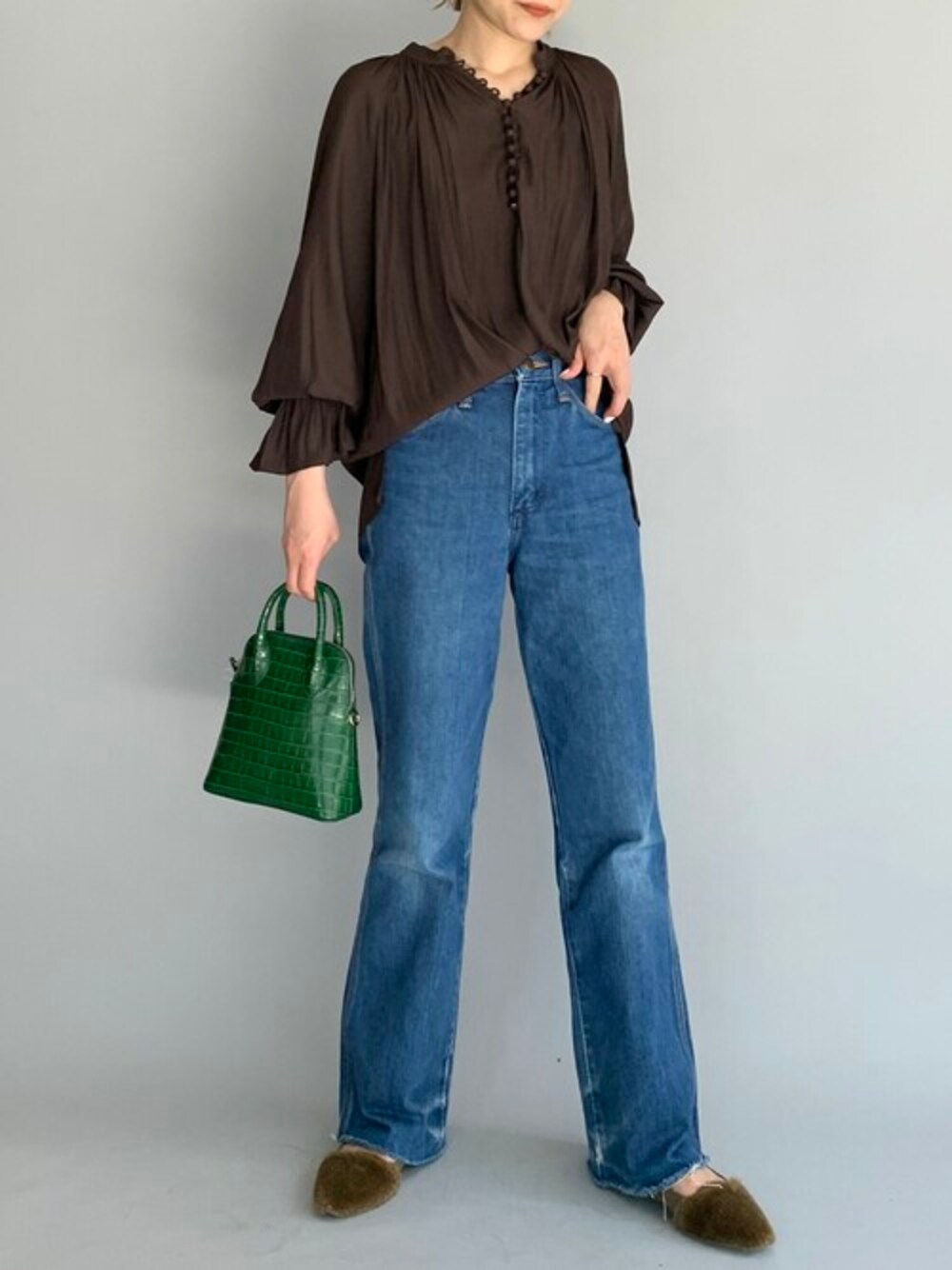PICCIN PRESS(PICCIN)のシャツ/ブラウス「フロントクルミボタンギャザーブラウス」を使ったコーディネート