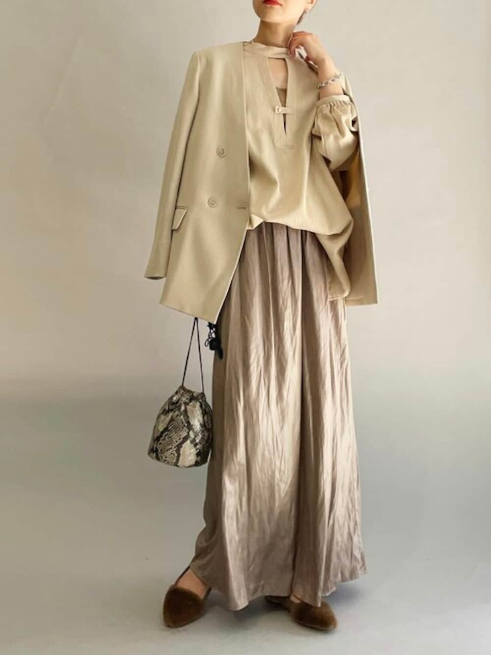 カジュアルにもカチッとキレイ目にも使えるジャケットコーデ♪ シンプルでオーバー過ぎずにマルチに合わせやすい一着!!! 袖口にスリットがあるから折り曲げてインナーの袖をチラ見せするのも良き♡ 今回は、デザインブラウスにサテンパンツでルーズなニュアンススタイルに♪ 他にもトレンドアイテムやこれから使えるアイテム等幅広いテイストをご用意しておりますので、是非覗いてみてくださいね(*^^*)