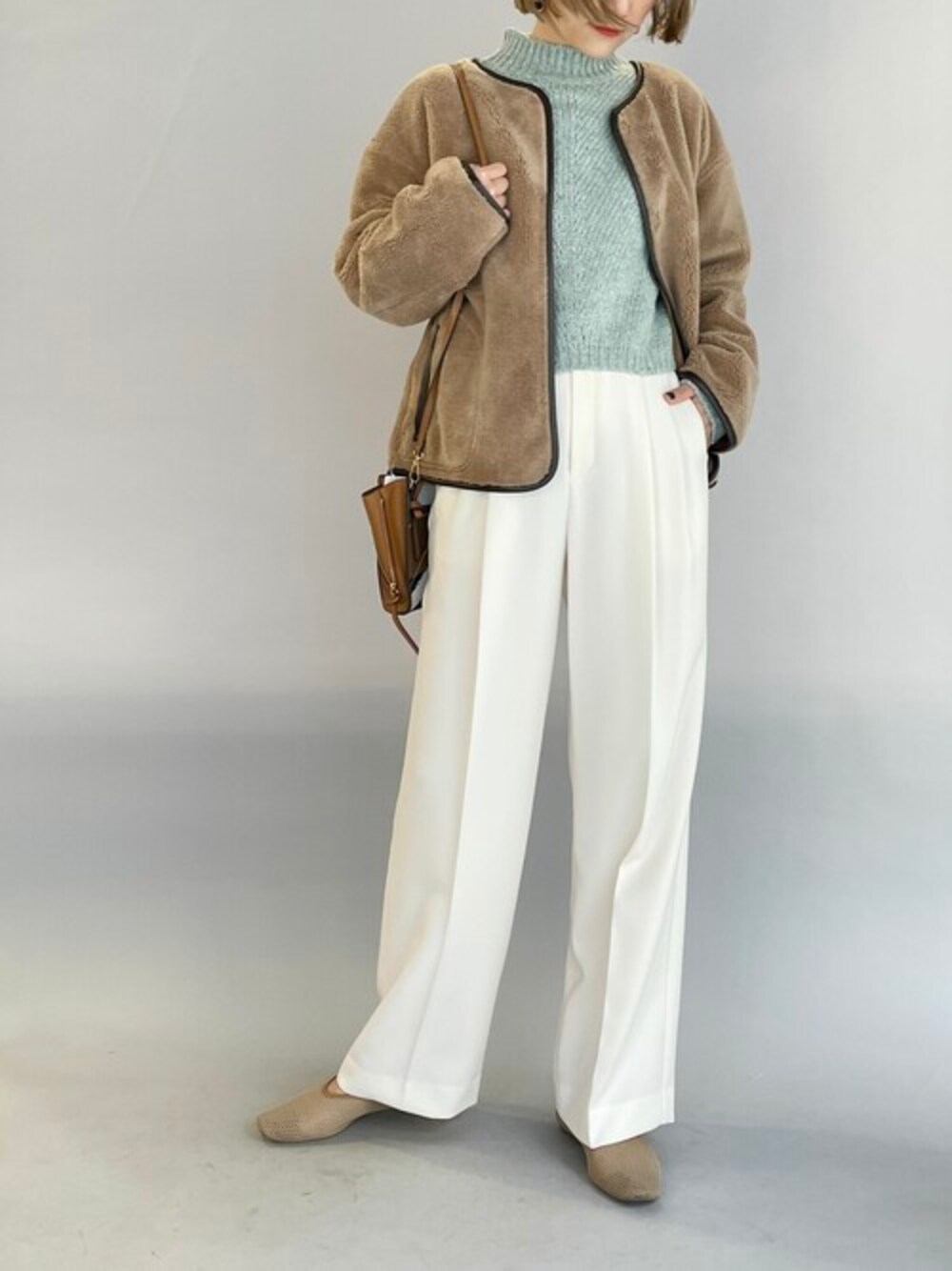 PICCIN PRESS(PICCIN)のムートンコート「リバーシブルフェイクムートンコート」を使ったコーディネート