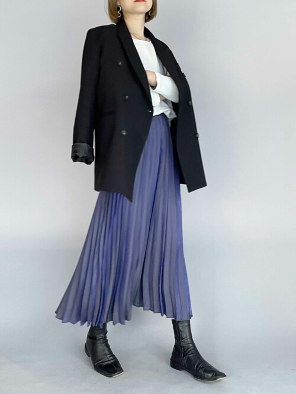 メタリックの光沢感がきれいなプリーツスカート♪ 光の当たり具合や歩く度に色んな動きが見えてコーデのアクセントとして 活躍します。 今回はジャケット合わせでカチッとカッコいい感じに♪ 他にもトレンドアイテムやこれから使えるアイテム等幅広いテイストをご用意しておりますので、是非覗いてみてくださいね(*^^*)