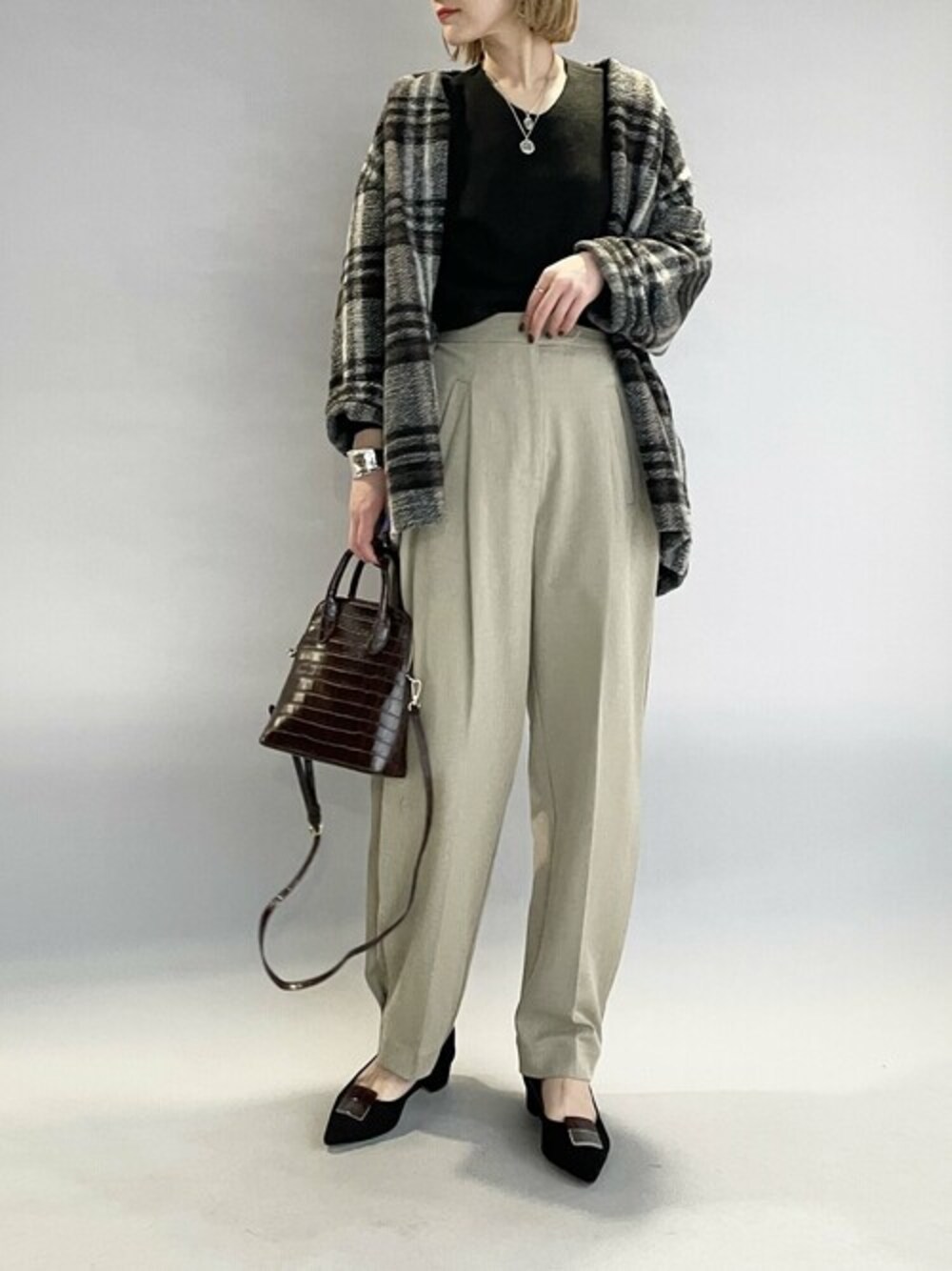 チェック柄ガウンは、コーデ映えする優秀アイテム! 軽量なのに温かく、サッと気兼ねなく羽織れるのも高ポイントです!!! アウターの下に着てチラッとチェック柄が見えても可愛い♪ 今回は、太めのスラックスパンツにパンプスでちょっぴりキレイめな感じに♪ 他にもトレンドアイテムやこれから使えるアイテム等幅広いテイストをご用意しておりますので、是非覗いてみてくださいね(*^^*)