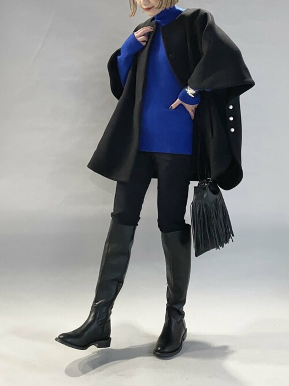 美ラインのポンチョコート♪ フェミニンやキレイめな印象のパールポンチョコートを 細身のパンツ+ロングブーツでシックに大人カッコいい感じに♪ 久しぶりの細身パンツ合わせは何だか新鮮な気分になって◎◎ 他にもトレンドアイテムやこれから使えるアイテム等幅広いテイストをご用意しておりますので、是非覗いてみてくださいね(*^^*)