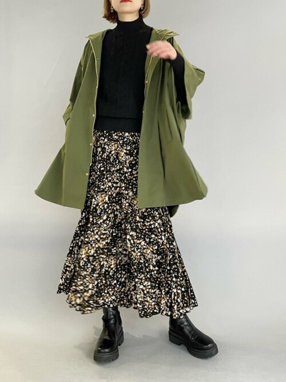 フレアポンチョコーデ♪ 撥水生地で薄手で軽く楽に着れる一着!! ポンチョならではのゆったりとしたシルエットで、 薄手だけど中に着こめるので、今の時期には肉感のあるニットやスエット、パーカー、 薄手のブルゾン等の合わせにも◎◎です。春はもちろん、梅雨時期にも活躍してくれるので、 長いスパンで使えるのも嬉しいポイントです♪ 今回は、ケーブルニットにスカート見えする楽ちん過ぎるプリーツガウチョパンツ合わせで、 ちょっぴりモードチックなスタイルにしてみました(^^) 他にもトレンドアイテムやこれから使えるアイテム等幅広いテイストをご用意しておりますので、是非覗いてみてくださいね(*^^*)
