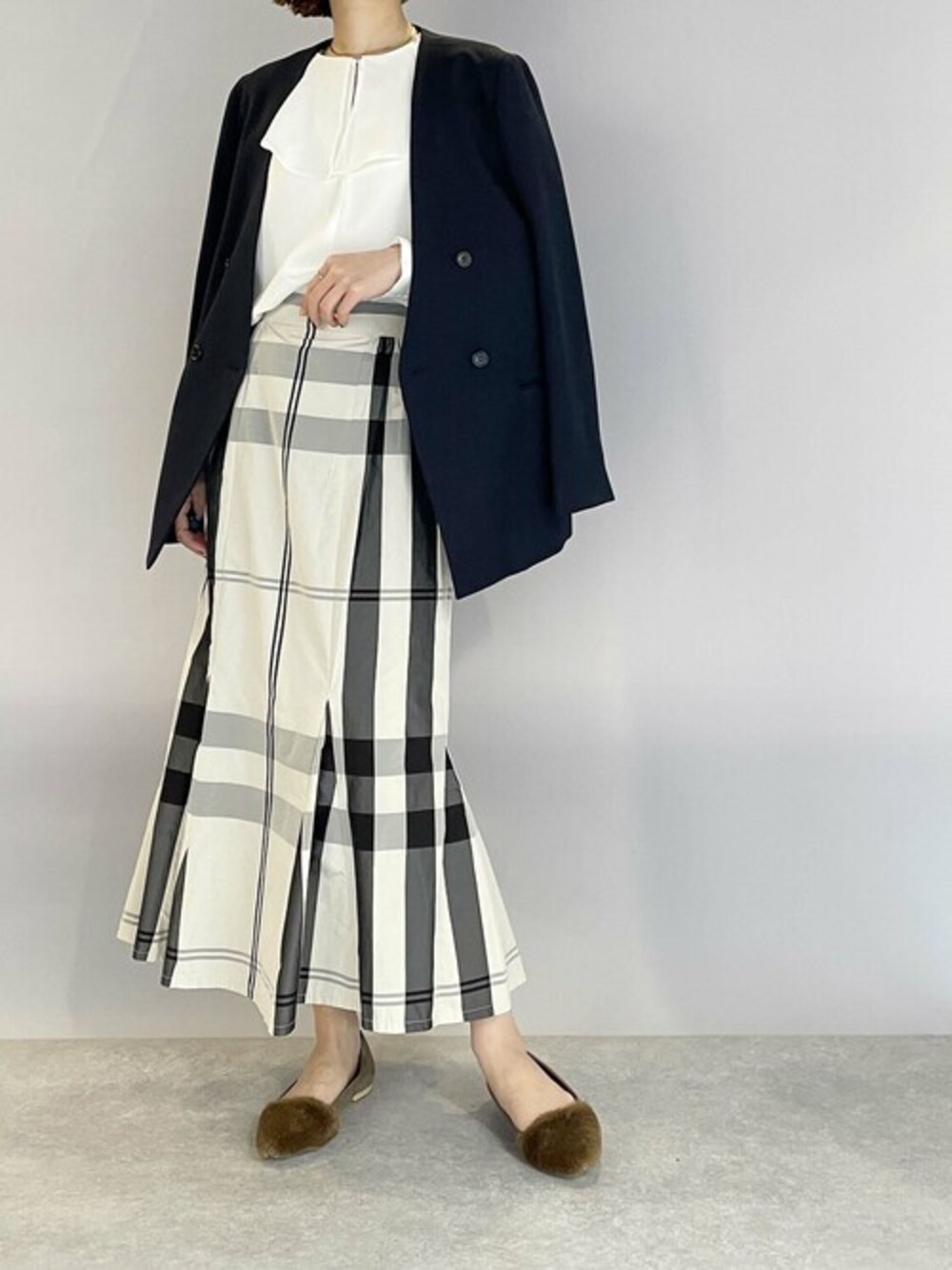 品よく見えるチェックマーメイドスカート♪ ウエスト周りはすっきりとしていて、 シルエットがキレイな一枚です!!! シンプルアイテム合わせでも一気にトレンド感が出る優秀スカート!!! 今回は、ジャケット&ブラウスでキレイめな感じに合わせてみました。 合わせやすいベーシックなカラーだから色物トップスとの相性も良さそうです(^^♪ 他にもトレンドアイテムやこれから使えるアイテム等幅広いテイストをご用意しておりますので、是非覗いてみてくださいね(*^^*)