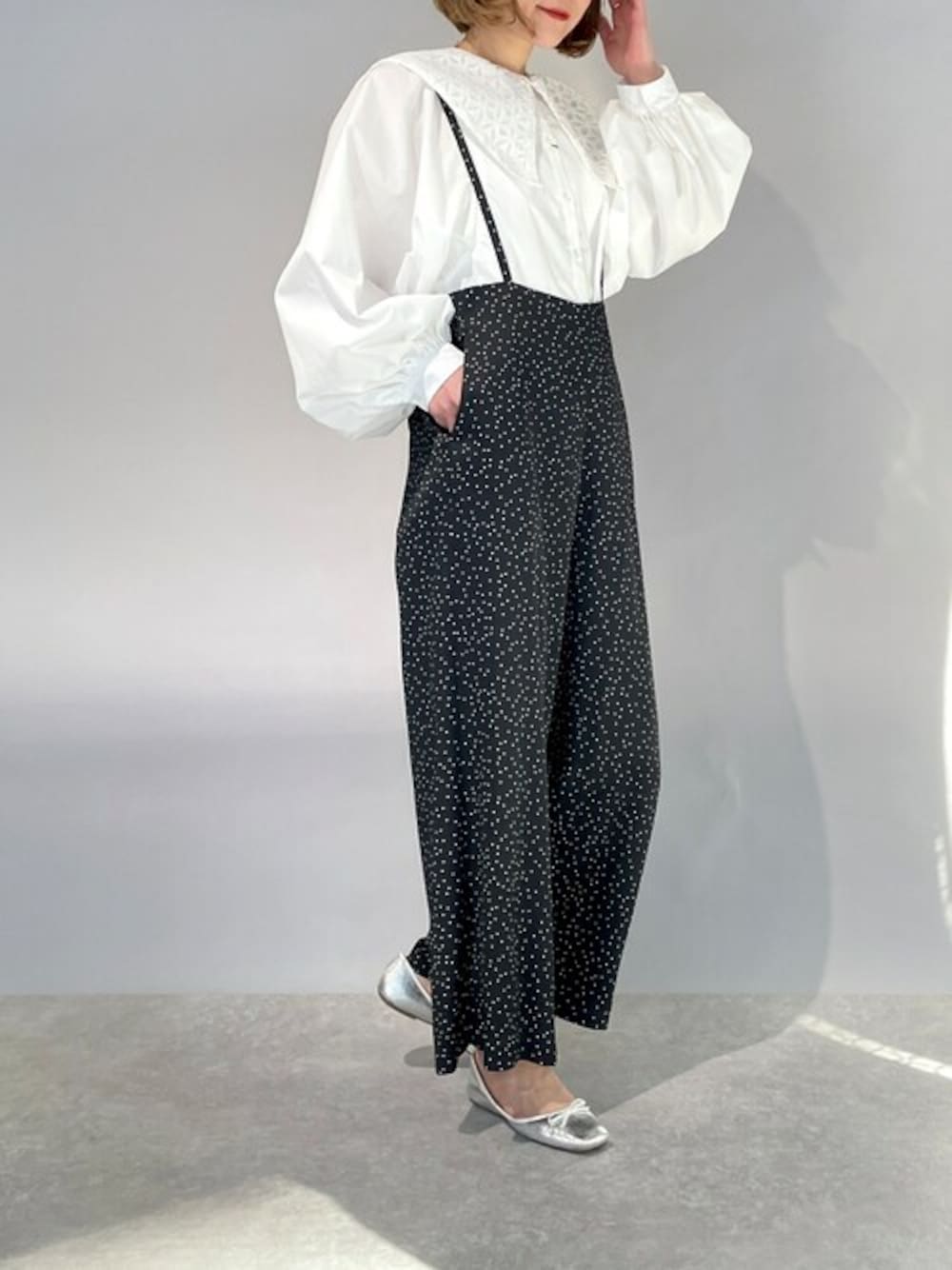 トレンドライクのビッグカラーブラウスコーデ♪ 今回はドット柄のサロペット合わせにバレエシューズでフェミニンカジュアルに♪♪ ふんわりボリューミーなシルエット、、、やっぱり可愛い~、、、♡ シンプルなのに存在感もある感じで春スタイルの優秀アイテムです(^^♪ 他にもトレンドアイテムやこれから使えるアイテム等幅広いテイストをご用意しておりますので、是非覗いてみてくださいね(*^^*)