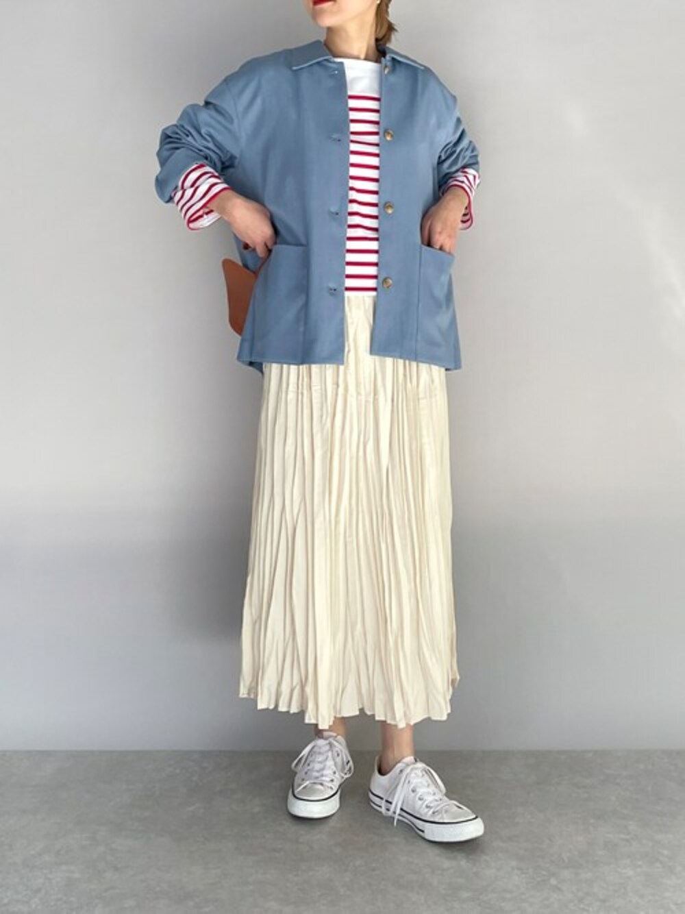 今年1枚は持っておきたいゆったりサイズのボーダーカットソー♪ しっかりした生地だから、へたらずにガンガン着れそうです!! サイズと生地もですが、やっぱりレッドカラーが個人的にお気に入りすぎます♪ 派手すぎないけど、コーデのアクセントに使いやすいのも好きなポイントです! 今回は、シャツジャケットにワッシャースカートでフレンチカジュアル風な感じに(^^) 他にもトレンドアイテムやこれから使えるアイテム等幅広いテイストをご用意しておりますので、是非覗いてみてくださいね(*^^*)