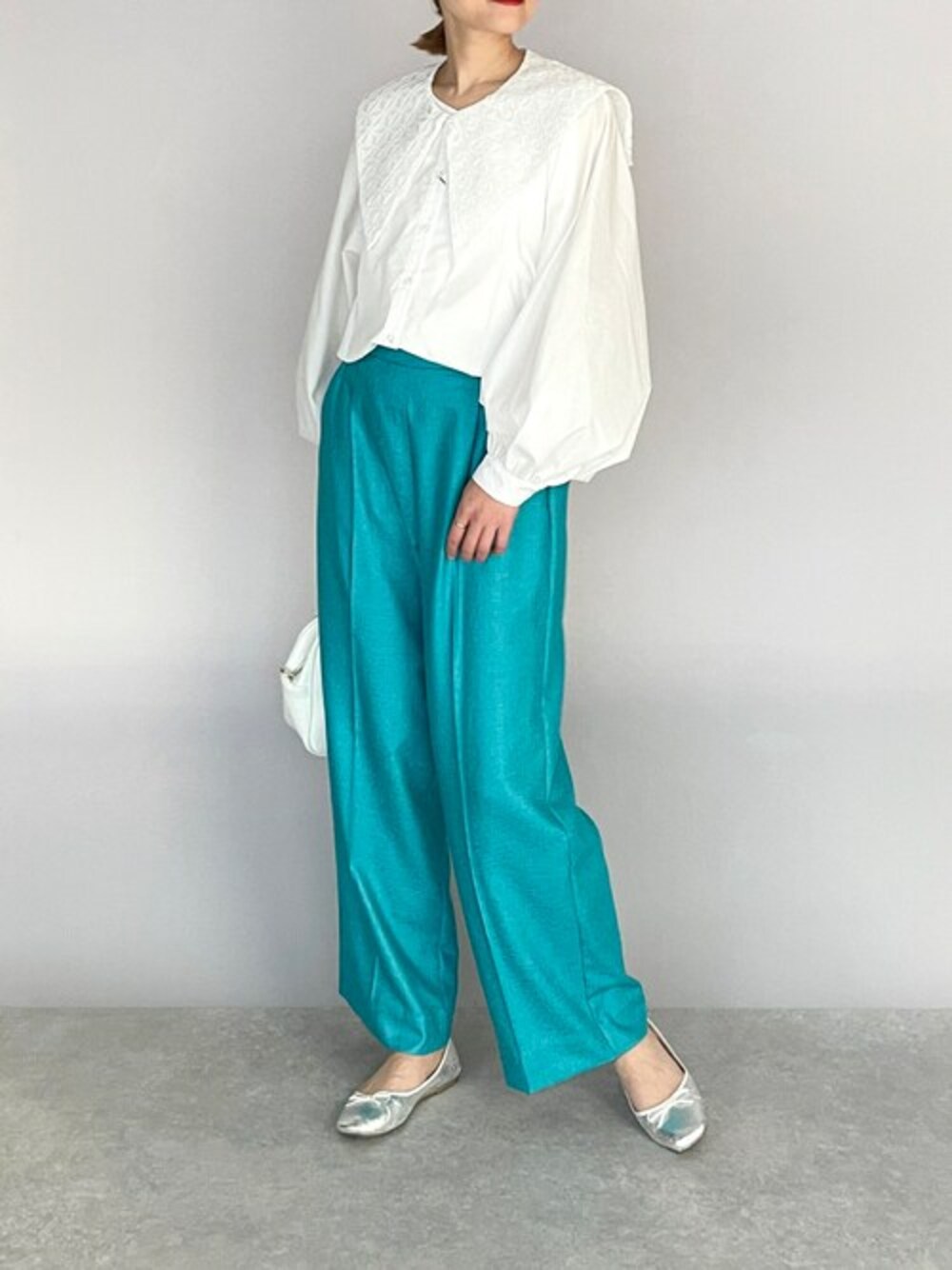鮮やかエメラルドパンツコーデ♪ リネンライクのパンツは、光沢感にキレイなカラーがお気に入りで、 カジュアルだけじゃなくてキレイめなスタイルにも活躍するので、個人的にこの春夏一押しの一着です。 今回は、お気に入りのビッグカラーブラウス合わせで爽やかに(^^) 他にもトレンドアイテムやこれから使えるアイテム等幅広いテイストをご用意しておりますので、是非覗いてみてくださいね(*^^*)