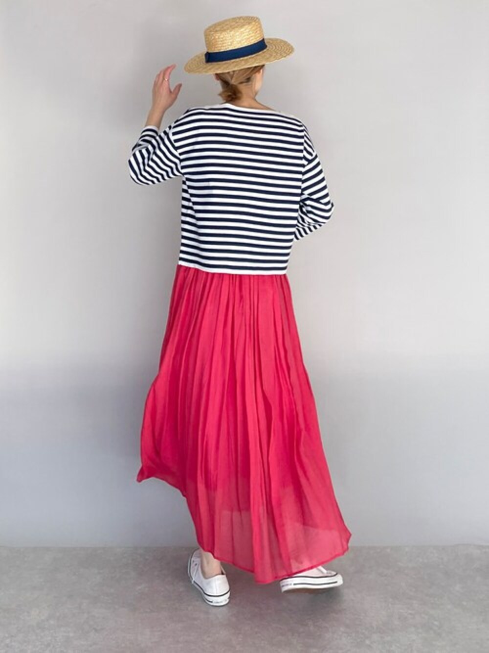 ボーダーにピンクスカートでポップなフレンチコーデ♪ 鮮やかなピンクカラーのスカートは、 透け感生地+ふわふわ〜と軽い質感で春夏スタイルにぴったりな一着です! ボーダーニットは短過ぎず、長過ぎずの絶妙な着丈が◎ ボトムとバランスが取りやすくてお気に入りです(^^) 他にもトレンドアイテムやこれから使えるアイテム等幅広いテイストをご用意しておりますので、是非覗いてみてくださいね(*^^*)