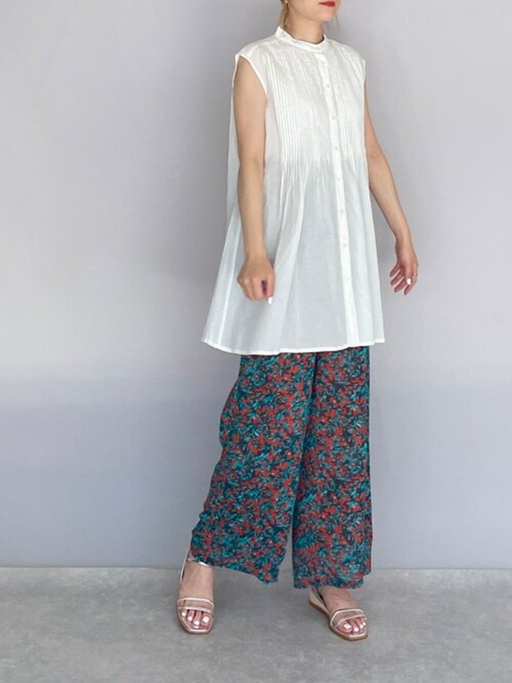 ●ブラウス フロントのピンタックから緩やかなや広がりがあり、 女性らしいシルエットで、気になるウエスト、ヒップラインをしっかりとカバーしてくれます。 フレンチスリーブなので、肩先が見えず華奢見え効果が期待出来るのも嬉しいポイントです♪ ●パンツ コーデのアクセントにもぴったりなフラワー柄で、派手過ぎない配色がお気に入りです。 ウエストゴムで着脱も楽ちん♪ 裏地が付いてるのも透ける心配もなし!です。 他にもトレンドアイテムやこれから使えるアイテム等幅広いテイストをご用意しておりますので、是非覗いてみてくださいね(*^^*)