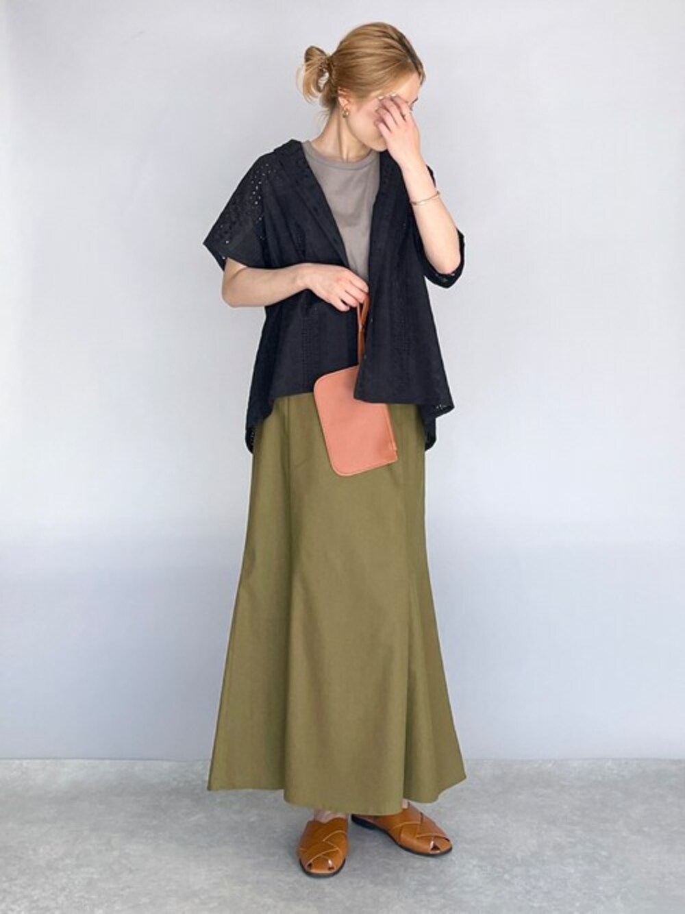 ●ブラウス BOXシルエットのようなゆったりとしたシルエットに レース生地で見た目も涼しげ一枚です。 羽織りでサッと使うのも◎ ●ノースリーブ 何枚あっても使えるノースリーブは、 肩部分にタックが入っていて華奢見え効果が期待できます。 シンプルなデザインなので、カジュアル、キレイめと幅広く使えるのも嬉しいポイントです。 ●スカート マーメイドシルエットが今年らしく、 すっきりとシンプルなのに、コーデに1枚取り入れるだけで、 今っぽいスタイルが叶うのでお気に入りです♪ 他にもトレンドアイテムやこれから使えるアイテム等幅広いテイストをご用意しておりますので、是非覗いてみてくださいね(*^^*)