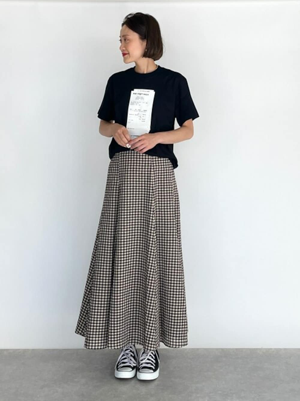 ●Tシャツ レシートモチーフのフロントプリントが他にはないデザインで、 アクセントにもなるし、夏の大人カジュアルスタイルに大活躍のTシャツです! 大きすぎず小さすぎずの絶妙なサイズ感なので、 ボトムを選ばないのも嬉しいポイント♪ ●スカート 可愛いい印象のギンガムスカートを 今回はプリントTでカジュアルに♪ 甘くなり過ぎる事なく幅広く使えるのも◎◎◎ 他にもトレンドアイテムやこれから使えるアイテム等幅広いテイストをご用意しておりますので、是非覗いてみてくださいね(*^^*)