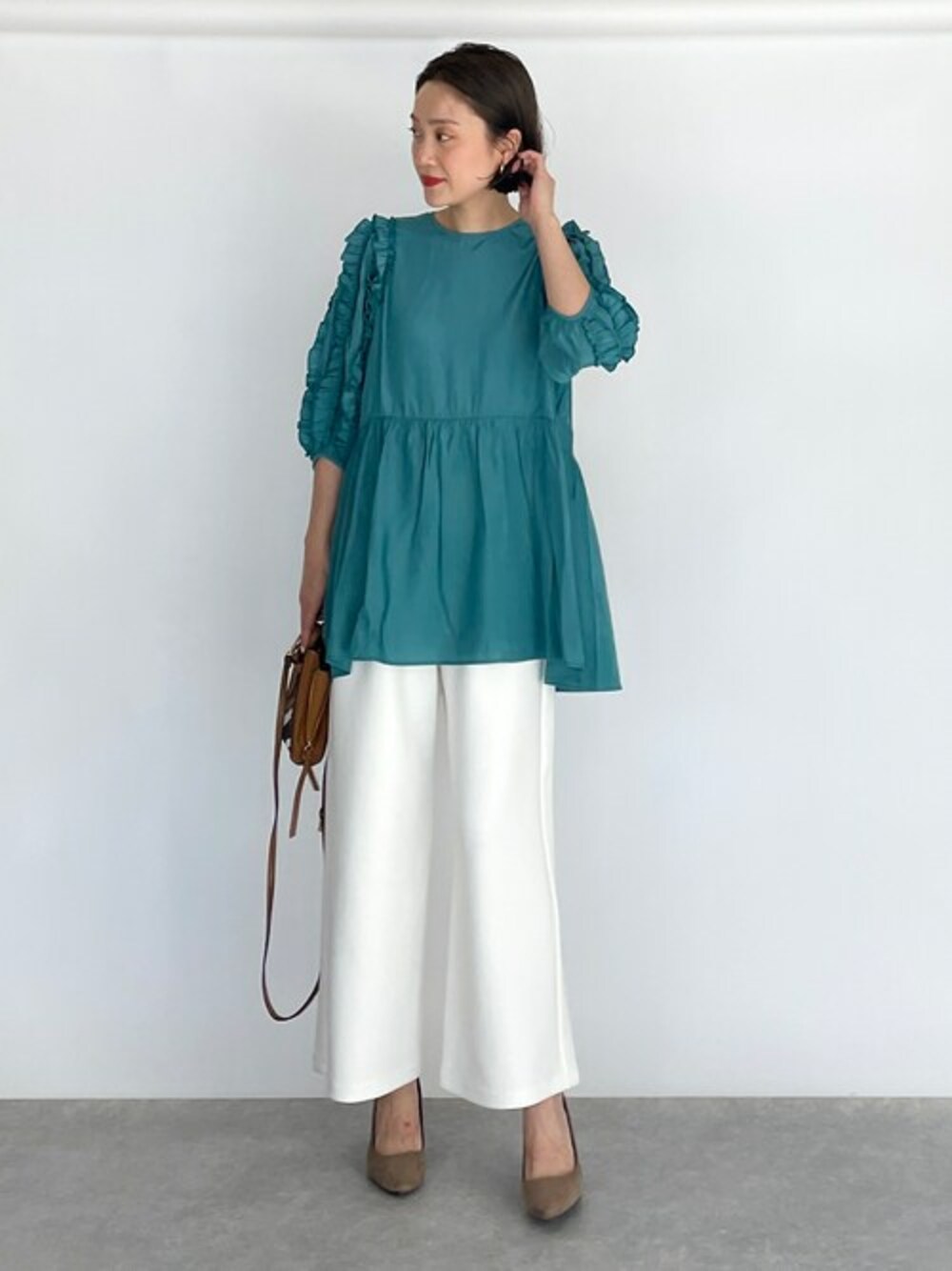 ●ブラウス 袖のフリルに切り替えからフレアに広がったシルエットの可愛らしいブラウスです。 オチ感のある素材で上品見えもするので、 大人キレイめスタイルに◎です。 ●パンツ シンプルデザインの着回し力抜群なパンツを今回はキレイめコーデに♪ 他にもトレンドアイテムやこれから使えるアイテム等幅広いテイストをご用意しておりますので、是非覗いてみてくださいね(*^^*)