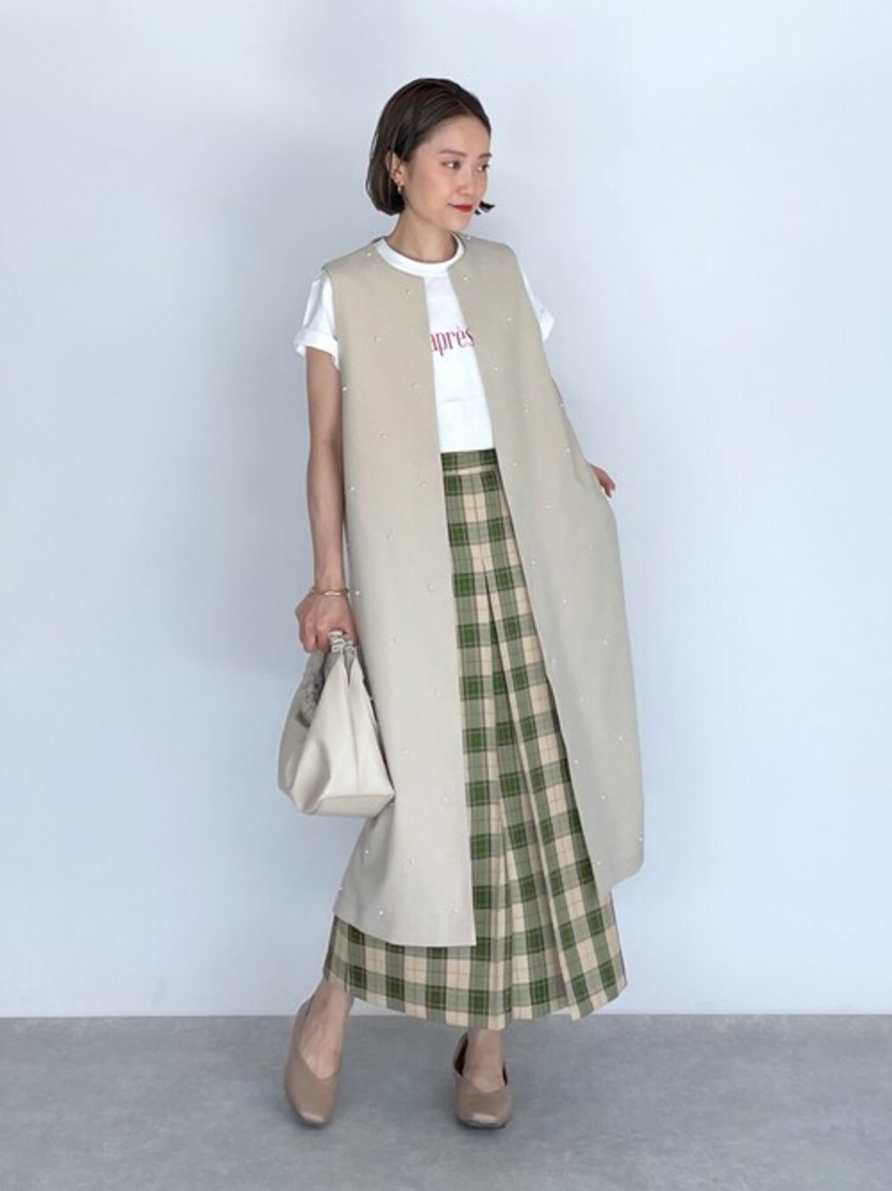 ●ジレ 小さなパールボタンが可愛く、 キレイめだけじゃなく大人のカジュアルスタイルにも活躍してくれます! 夏だけじゃなく秋口にもシアートップスなどのインナー合わせで使える1枚です♪ ●Tシャツ ガンガン使えるTシャツは赤のフロントプリントが丁度いいアクセントになって、気に入ってます♪ ●スカート 秋色な配色が可愛い!! 早くも秋物が気になる今の時期は、カラーから秋物を取り入れるのもいいですね♪ 他にもトレンドアイテムやこれから使えるアイテム等幅広いテイストをご用意しておりますので、是非覗いてみてくださいね(*^^*)