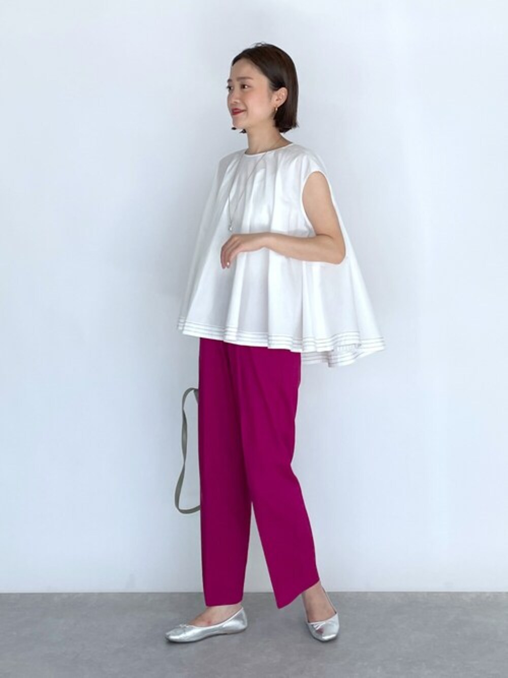 ●ブラウス フワッとヒラっとしたラインが可愛く、 肩先が出ないフレンチスリーブも◎で、 今の時期にぴったりなブラウスです! ●パンツ 柔らかくて涼しく履けるカラーパンツは、 コーデのアクセントに最適なビビッドカラーがお気に入りです♪ 他にもトレンドアイテムやこれから使えるアイテム等幅広いテイストをご用意しておりますので、是非覗いてみてくださいね(*^^*)