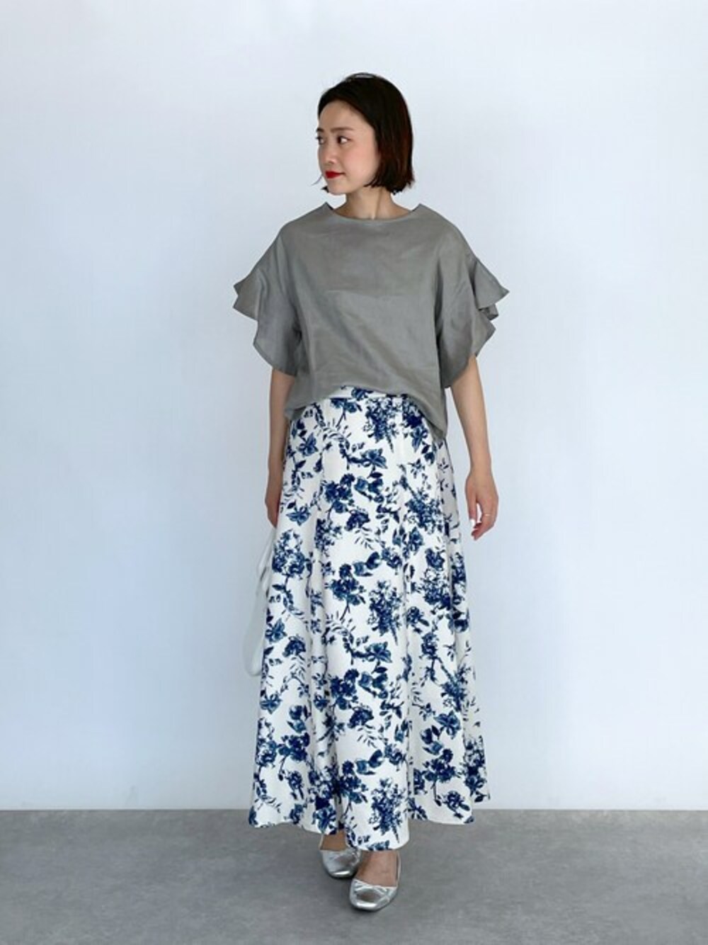 ●ブラウス フレンチリネンブラウスは、 ヒラヒラっとした袖のフリルデザインがポイントで、 シックな落ち着いたカラーで大人カジュアルスタイルにぴったりです! ●スカート ラインが綺麗なスカートは、 今の時期に丁度いい涼しげな生地感で爽やかに着れる1枚です。 他にもトレンドアイテムやこれから使えるアイテム等幅広いテイストをご用意しておりますので、是非覗いてみてくださいね(*^^*)