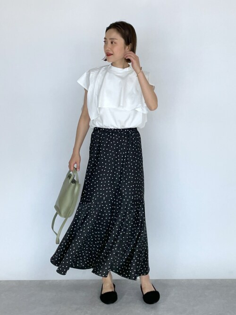 ●トップス 大きめなセーラーカラーが可愛いトップスは、 一気に今年らしいコーデが完成するので、お気に入りです。 スカートやハイウエストパンツ以外にも ジャンスカ、サロペットのインナーとしても活躍してます! ●スカート ほんのり光沢感のあるドットスカートは、 こちらも今年らしいマーメイドシルエット◎◎ 光沢があるので、カジュアルにもキレイめにもマルチに使えます! 他にもトレンドアイテムやこれから使えるアイテム等幅広いテイストをご用意しておりますので、是非覗いてみてくださいね(*^^*)