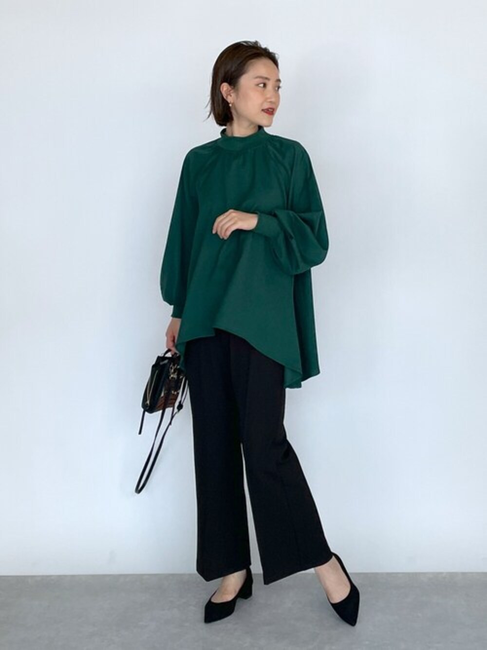 ●ブラウス 秋らしい深みのあるグリーンブラウスは、 シンプルながらも袖のボリューム感、裾がヘムラインになっていたりと大人カッコいいブラウスです! パンツでハンサムスタイルやモードスタイルに◎ ●パンツ ラインが綺麗なお気に入りのフレアパンツは、 ハイウエストだから、トップスインした時もバランス良く見えるのでフル活用しています!!