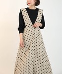 ●ワンピース 目を引くドットジャンスカ♡ 上身頃はスッキリと、スカート部分はフレアに広がった綺麗なシルエットです。 クルーネックやハイネック、タートルと合わせても すっきりとした印象に見せてくれます! ドット柄だけでなくポケットにパールがある事で、 上品見えもしてくれるので、お呼ばれコーデにも活躍してくれます! まだまだ暑い今の時期にはノースリ合わせも◎♪ 他にもトレンドアイテムやこれから使えるアイテム等幅広いテイストをご用意しておりますので、是非覗いてみてくださいね(*^^*)