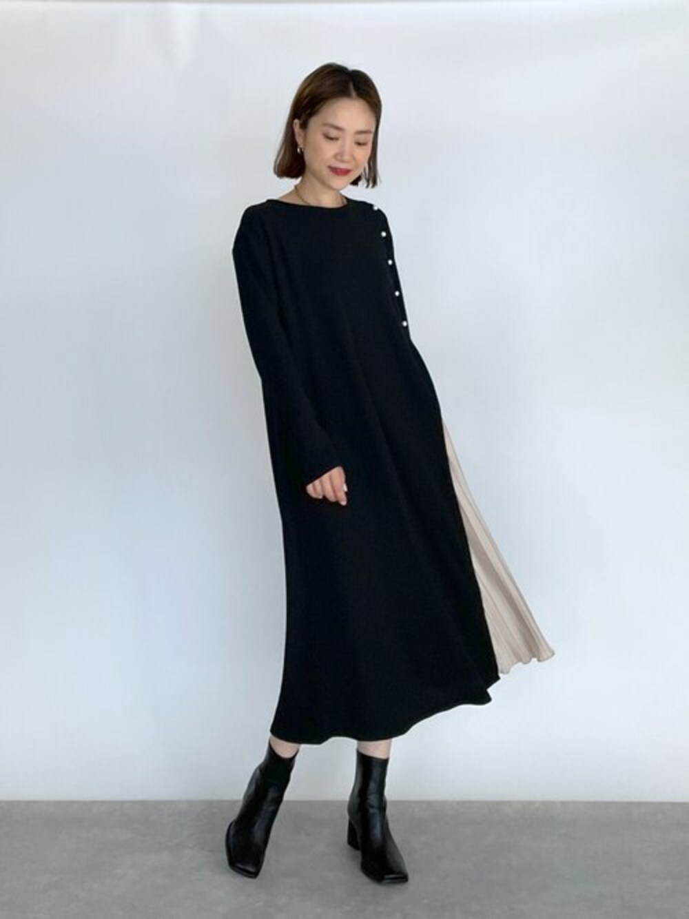 PICCIN PRESS(PICCIN)のワンピース「サイドプリーツパールワンピース」を使ったコーディネート