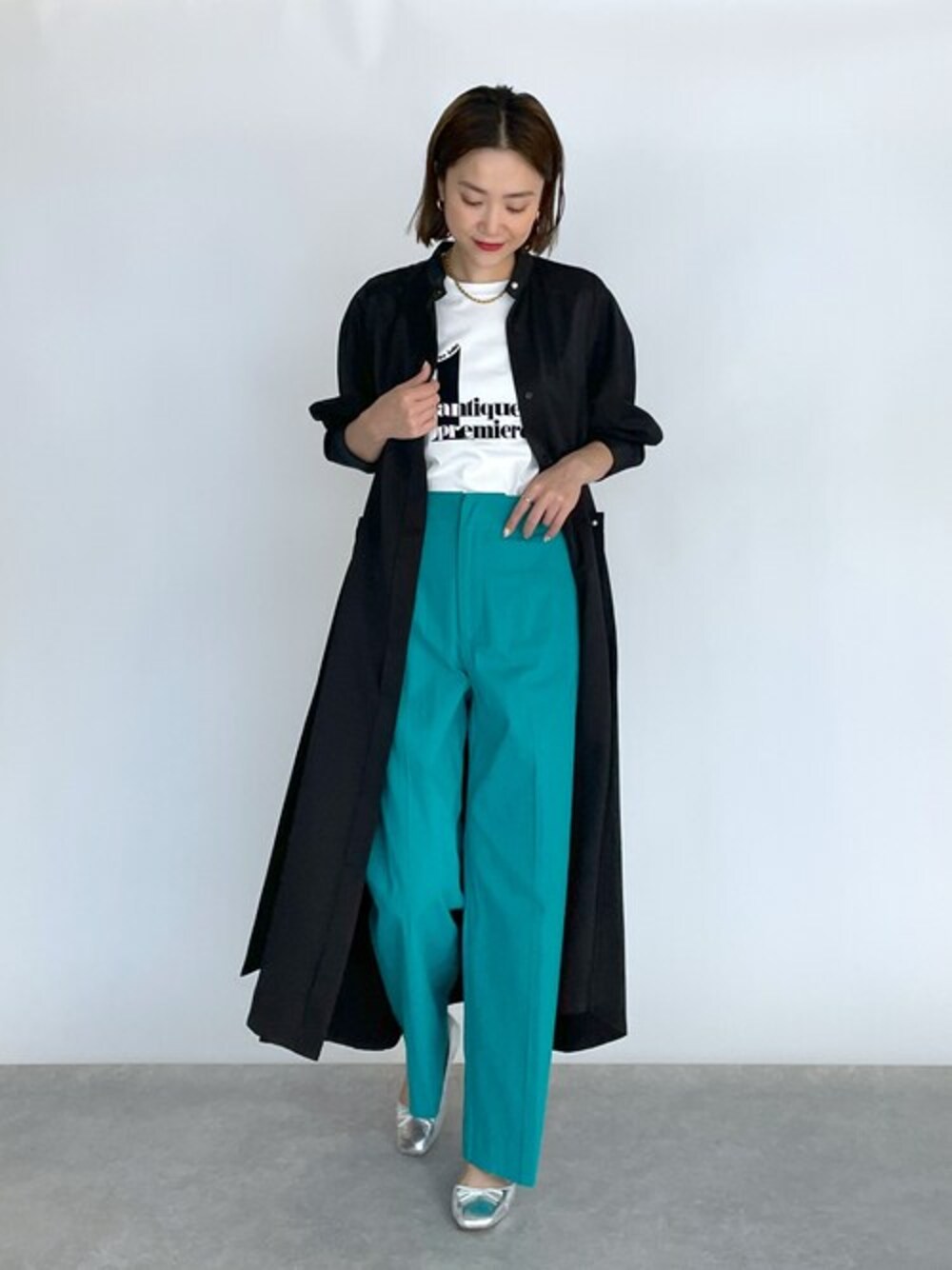 ●ワンピース ほんのり光沢感のある生地にパールやウエストリボンが付いたコートワンピースは、 羽織りとしても活躍できる一枚です。 緩やかに広がりのあるシルエットや後ろギャザー入りでバックスタイルもカッコよくてお気に入りです♪ ●Tシャツ フロントのフロッキーロゴが目を引くTシャツはシンプルスタイルにも色柄物にもマッチします。 ●パンツ フル活用のストレッチパンツは、 シックなスタイルのアクセントにもぴったりなパンツです。 他にもトレンドアイテムやこれから使えるアイテム等幅広いテイストをご用意しておりますので、是非覗いてみてくださいね(*^^*)