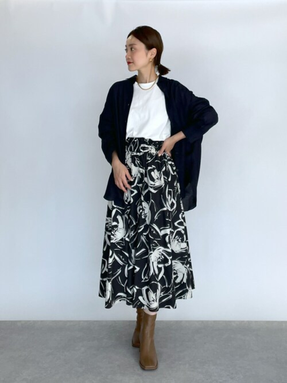 ●シャツ 今の時期に丁度よく着れるシアーシャツ♡ 透け過ぎないので、色々と着回しが出来るのが嬉しいです。 ノースリーブやTシャツ合わせ以外にも、ゆったりとしたサイズなのでカットソーや薄手のニット合わせにも良さそうです♪ ●スカート コーデのアクセントになる大胆なフラワー柄がお気に入りです! ふんわりシルエットですが、甘くなりすぎないのが◎ トップス、足元次第で幅広く着回しが出来そうです♪ ●ブーツ スッキリと足首も細見えするブーツなので、 ボリュームのあるボトム合わせでもバランスが取りやすいです♪ 他にもトレンドアイテムやこれから使えるアイテム等幅広いテイストをご用意しておりますので、是非覗いてみてくださいね(*^^*)