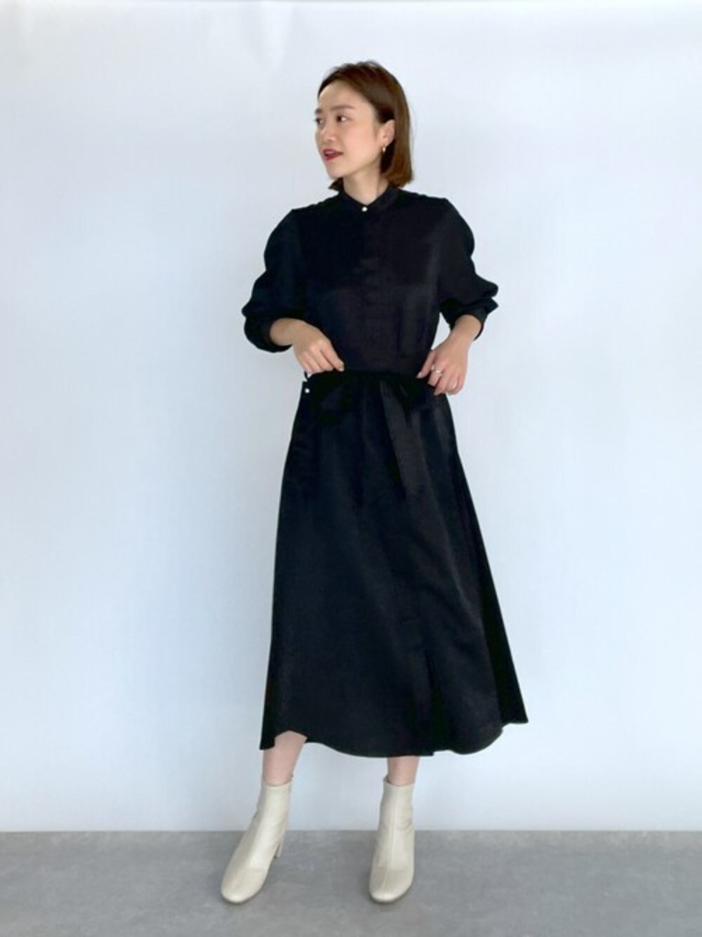 ●ワンピース 光沢感のあるキレイめなコートワンピースで、 袖、襟、ポケットのパールが主張し過ぎずにさり気ないのが◎ ウエストリボンをキュッと結ぶと可愛いだけじゃなくてモードな感じでカッコ良くも着れます! ●ブーツ 太めのヒールで安定感があるので歩きやすく、 中のソールにはクッションが入ってるのでフカフカしていて履き心地も抜群です! 他にもトレンドアイテムやこれから使えるアイテム等幅広いテイストをご用意しておりますので、是非覗いてみてくださいね(*^^*)