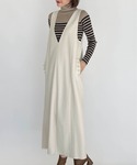 ●ワンピース Vラインや前裾スリット入りで、すっきり見え+動きやすいジャンパースカートです。 ポケットのパールが主張し過ぎないので、 色柄物合わせにも◎です! 今回はボーダーでカジュアルに♪ ●ニット フル活用のボーダーニットを今回はインナーに。 シンプルなコーデのアクセントにも丁度良い 万能アイテムです! ●ブーツ すっきりと綺麗見えするサイドゴアブーツです。 Mサイズを着用しました。普段サイズで丁度良く履けました。 他にもトレンドアイテムやこれから使えるアイテム等幅広いテイストをご用意しておりますので、是非覗いてみてくださいね(*^^*)