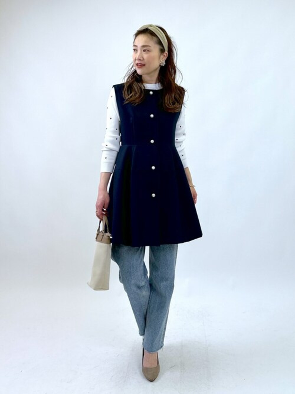 ●ジレ 女性らしいメリハリとふんわりシルエットは可愛すぎるパニエジレです♡ フロントがパールボタンなので、綺麗に上品な印象に見せてくれます。 合わせ方次第でオンオフはもちろん、オケージョンなどのお呼ばれコーデにも活躍してくれます♪ ●ニット 小さなハート刺繍が散りばめられたリブニットは、 コーデの邪魔にならずに、コーデのポイントになってくれる万能すぎる一枚です!!!!