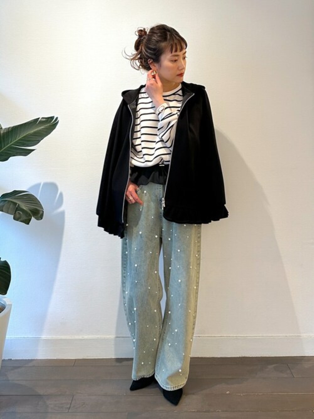 ●パーカー もっちり感や滑らかな肌触りが気持ちが良く、ゆったりとしたサイズ感で楽な着心地です。 裾フリルや裾にかけて広がったシルエットが新鮮で、カジュアルなパーカーも可愛くコーデが完成します。 ●プルオーバー 裾の異素材生地部分はドロストが付いていて、絞り具合でシルエットが変わるので、 ボトムやコーデに合わせて違った雰囲気が楽しめます。 ゆったりとしつつも裾を絞ってメリハリを出したシルエットが今年らしくてお気に入りです♪ ●パンツ ルーズシルエットながらもウエストやヒップ周りが綺麗でプラスフロントパールで、 ボーイズライクにならずに女性らしく履けます。