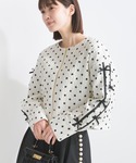 PICCIN PRESS(PICCIN)のノーカラージャケット「サッカードット袖リボンジャケット」を使ったコーディネート