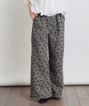 ●ブルゾン フロッキーのハートが目を惹く一着です。 見た目にもあたたかなヘリンボーンは、取り入れるだけでシーズンムードを一気に上げてくれます! 裾にかけてひらりと緩やかに広がった女性らしいシルエットが◎ ダブルジップの開け具合ですっきり感のある着こなしも楽しめます。 存在感がありながらも、落ち着きのあるカラーで大人スタイルにも合わせやすいです。 今回は同素材パンツとセットアップで、ちょっぴりハンサムな合わせにしてみました。 ●ニット 立体的な肩のデザインが何ともかわいいニットです。 ベーシックなカラーながらも、さり気なく存在感を放つので、シンプルな合わせでもコーデが華やぎます。 メイントップスはもちろん、キャミワンピやサロペット等のインナーとしても活躍してくれ、 着回し力のあるアイテムです。 ●パンツ 取り入れるだけでコーデが華やぐパンツ。 ヘリンボーン×フロッキーハートのありそうでない組み合わせが魅力の一本です。 ゆったりとしたワイドシルエットにフロントタック入りで、動きやすく、歩きやすいです。 前ウエストのデザインなど細部にもこだわりが見え、トップスインしてもサマになります。 後ろウエストはゴム仕様なのも嬉しいポイント。