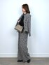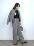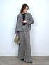 ●ブルゾン フロッキーのハートが目を惹く一着です。 見た目にもあたたかなヘリンボーンは、取り入れるだけでシーズンムードを一気に上げてくれます! 裾にかけてひらりと緩やかに広がった女性らしいシルエットが◎ ダブルジップの開け具合ですっきり感のある着こなしも楽しめます。 存在感がありながらも、落ち着きのあるカラーで大人スタイルにも合わせやすいです。 今回は同素材パンツとセットアップで、ちょっぴりハンサムな合わせにしてみました。 ●ニット 立体的な肩のデザインが何ともかわいいニットです。 ベーシックなカラーながらも、さり気なく存在感を放つので、シンプルな合わせでもコーデが華やぎます。 メイントップスはもちろん、キャミワンピやサロペット等のインナーとしても活躍してくれ、 着回し力のあるアイテムです。 ●パンツ 取り入れるだけでコーデが華やぐパンツ。 ヘリンボーン×フロッキーハートのありそうでない組み合わせが魅力の一本です。 ゆったりとしたワイドシルエットにフロントタック入りで、動きやすく、歩きやすいです。 前ウエストのデザインなど細部にもこだわりが見え、トップスインしてもサマになります。 後ろウエストはゴム仕様なのも嬉しいポイント。