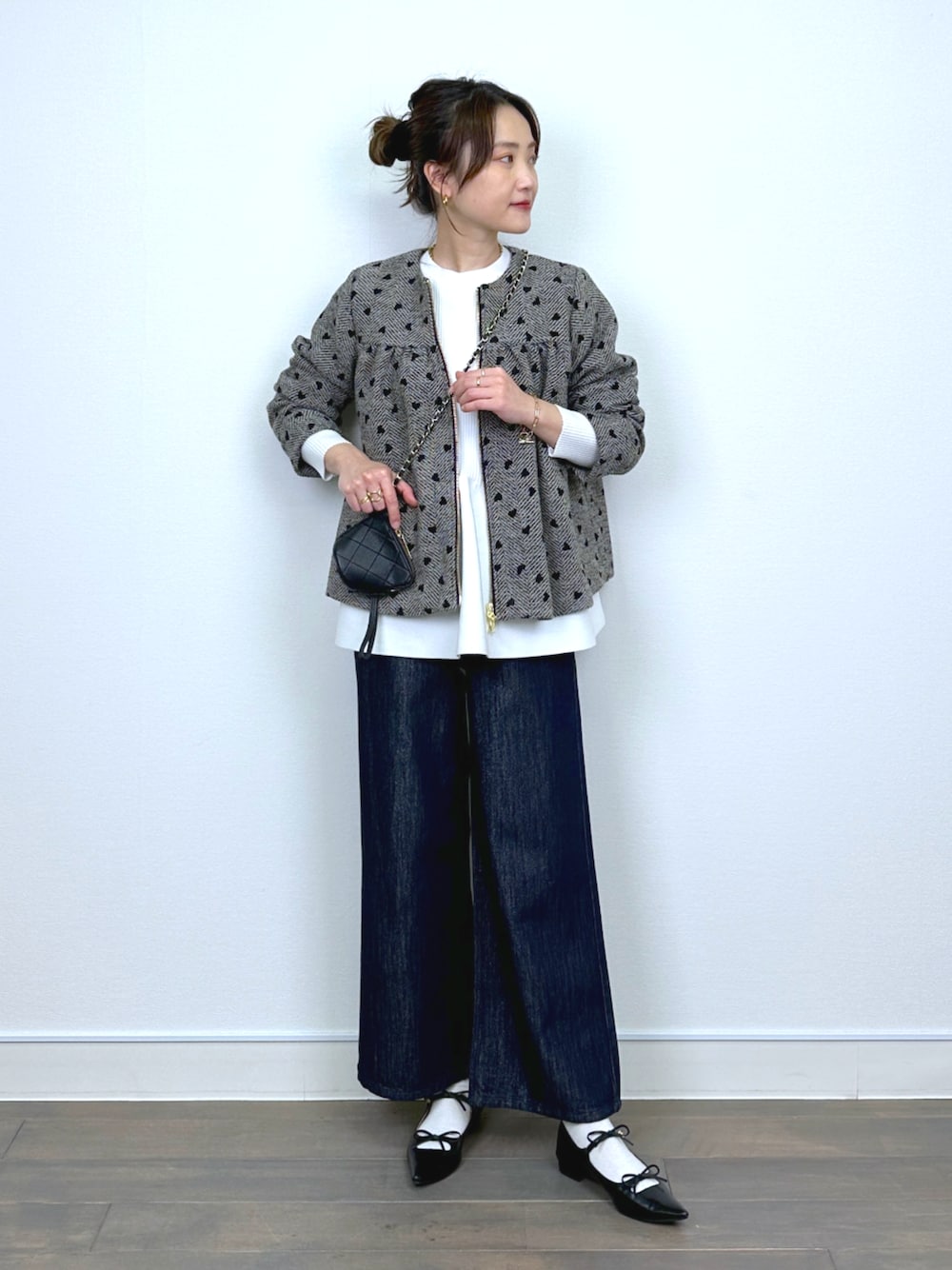 PICCIN PRESS(PICCIN)のブルゾン「【セットアップ可能】フロッキーハートヘリンボーンブルゾン」を使ったコーディネート