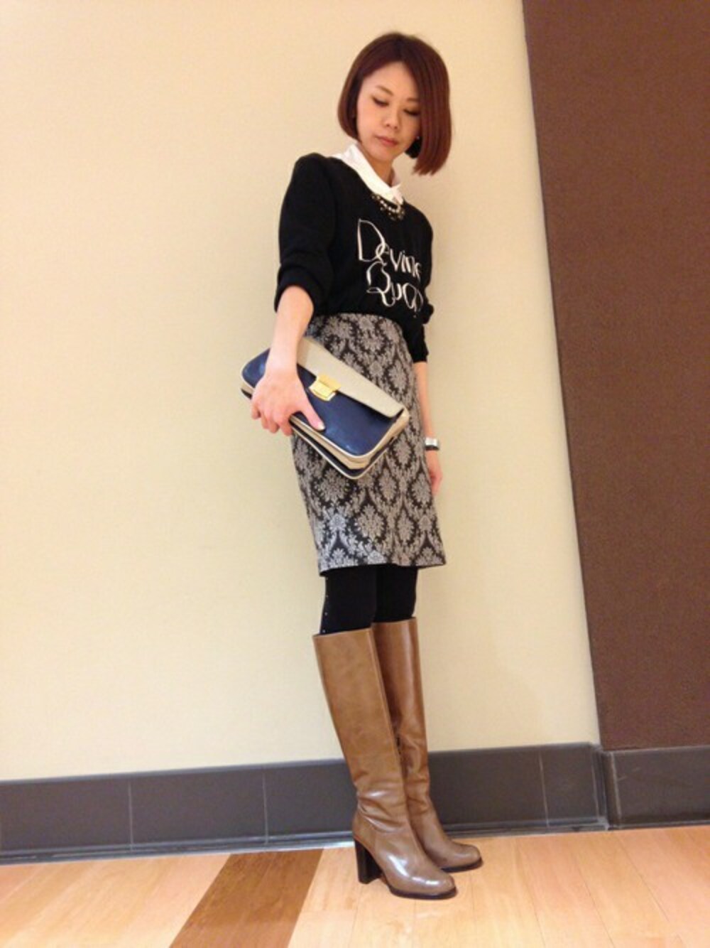 ODAmayuのブーツ「チャンキーヒールロングブーツ」を使ったコーディネート