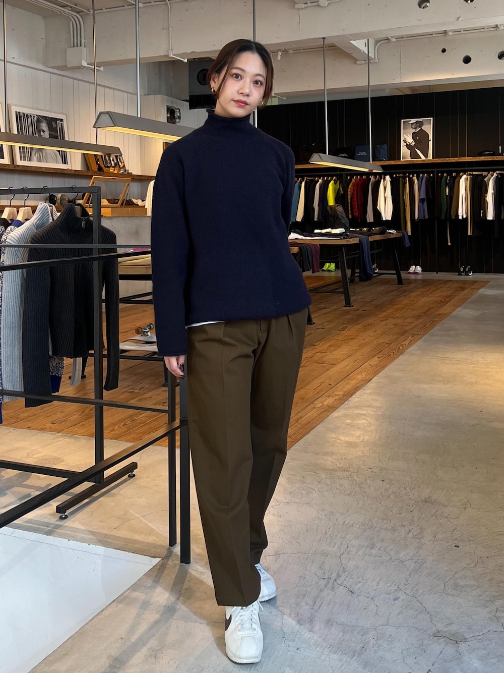いつもとは違う キレイめコーデにしてみました! パンツはカーキですが 実際はブラウンっぽくも見える落ち着いた色合いで 形もとても綺麗です◎◎ ニットもウール素材で暖かいです♡