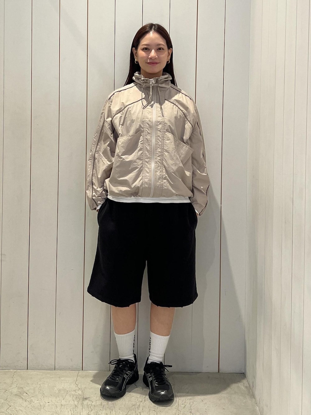 とても軽量なライトブルゾン⭐︎ スタンドネックと裾には調節可能な ドローストリングが付いているので シルエットの変化を楽しめますっ☺︎! 同素材のパンツとセットアップ可能です◎ BBS06120