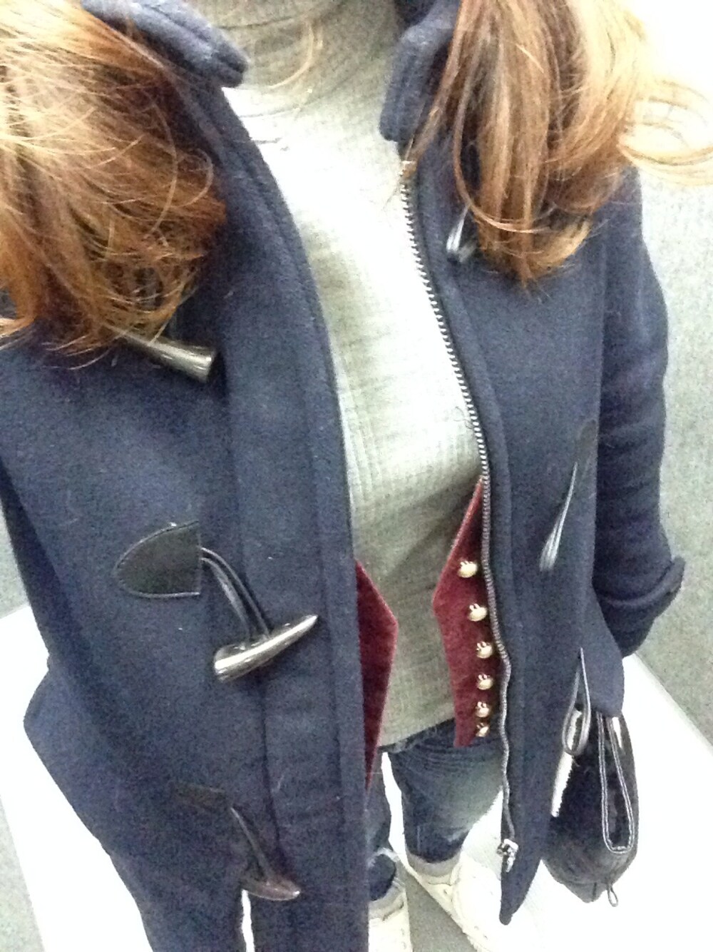 ダッフル…ZARA ベスト…JewelChanges タートル…UNIQLO パンツ…SLY 靴…PF お気に入りベスト♡ 見えづらい(>_<) 表ボルドーで裏地がゴールド♡