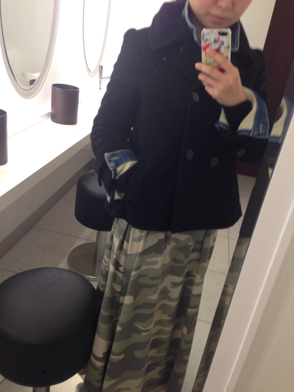 Pコート/ブランド不明 Gジャン/ZARA ニット/UNIQLO カモフラ/ブランド不明 スニーカー/PF ストールなしでも全然いけた〜☆