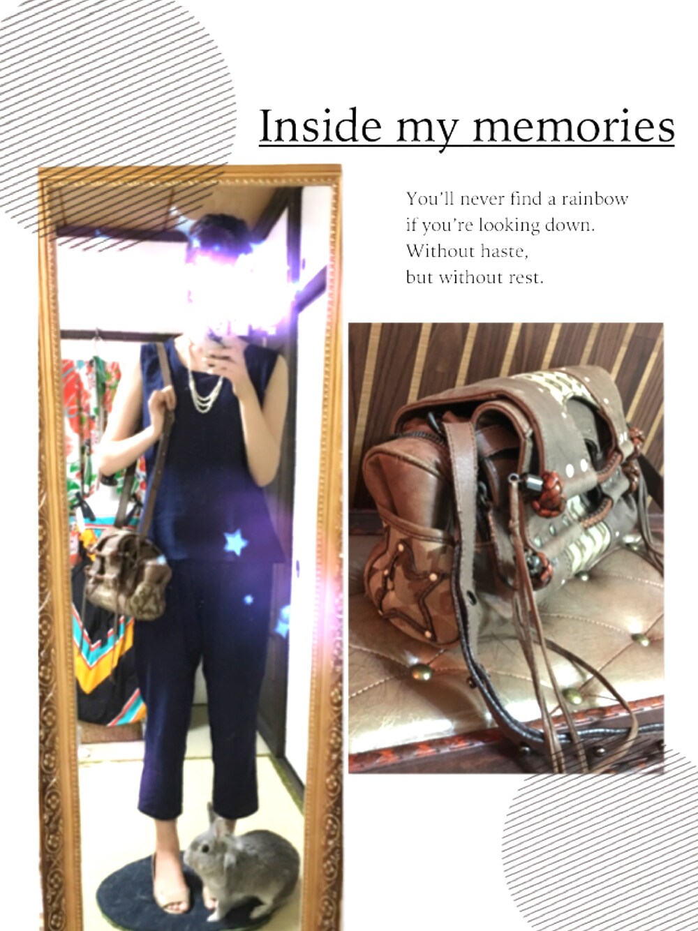 セットアップです。うさちゃんが主役になってるので(笑)棒立ちです。 鞄はusedでモノグラムの「CORT」を検索したら財布と鞄がヒットしました。海外のブランドっぽいです。 ディティールに凝ってるので質感が秋の装いにぴったりかと期待です。