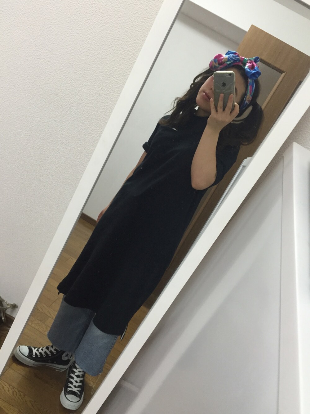 頭に巻き巻き 切りっぱなしデニム が今の気分