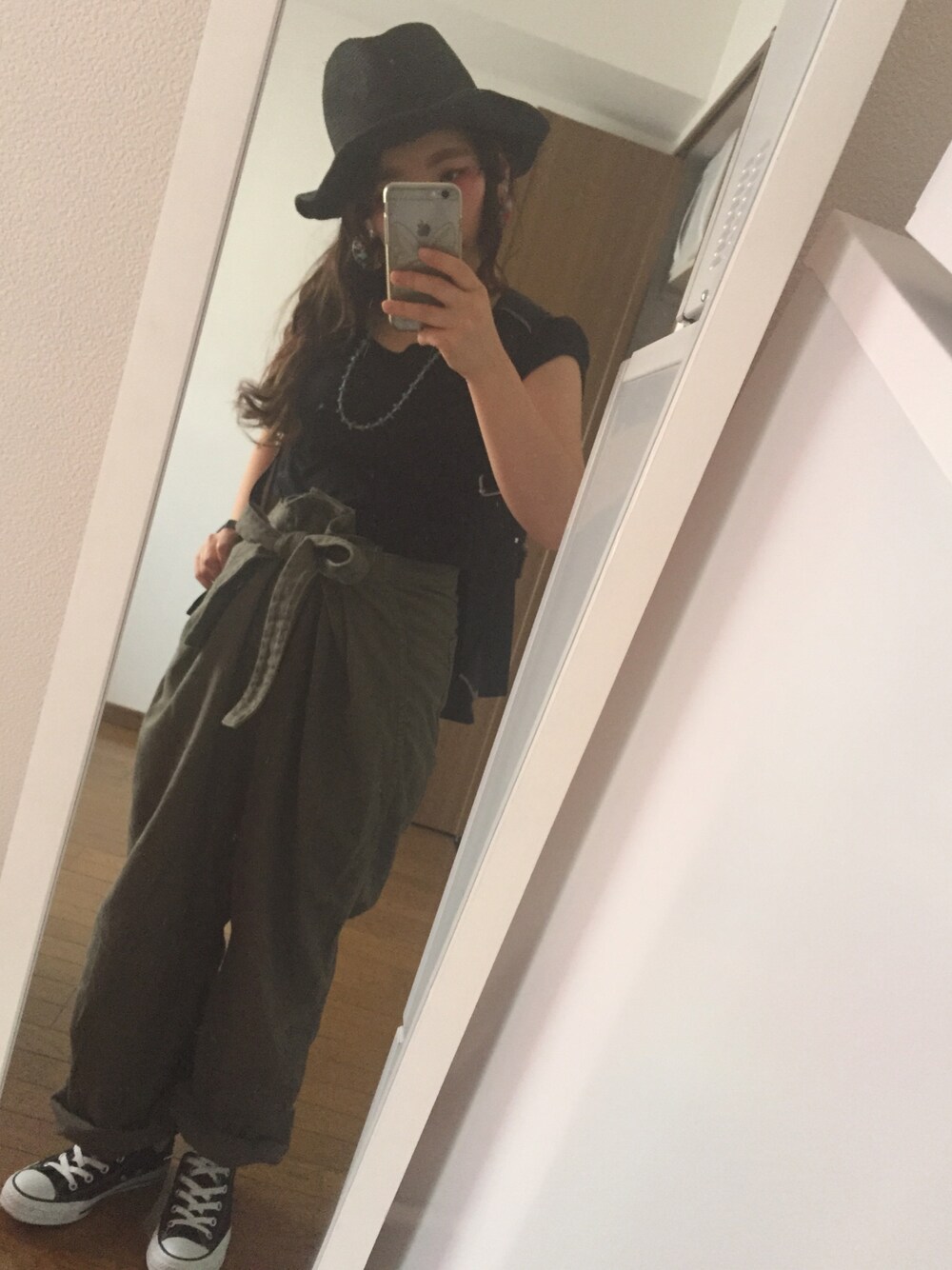 メンズコーデに 女の子らしく髪巻いておろして トップスはパフスリーブなってる のチョイス✌🏿️✌🏿 MIXができるようになってきた