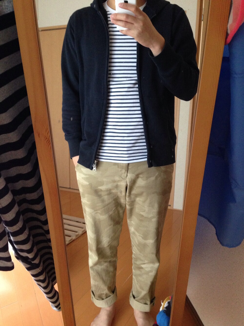 パーカー、ボーダーTはUNIQLOです。 カフェでご飯を食べてきました。